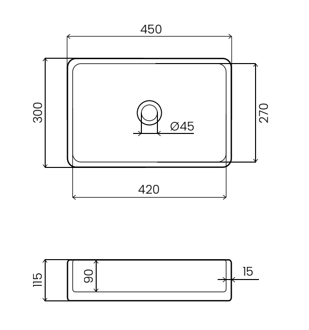 - kształt:umywalka prostokątna