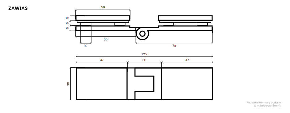 - typ zawiasów: obrotowe 180º,