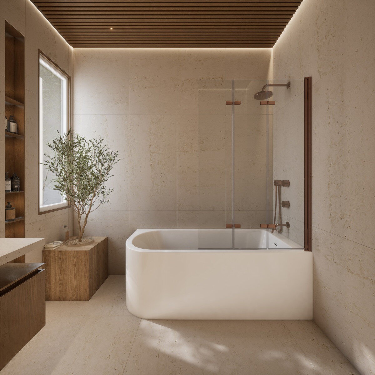 AD Naturalnie Sajno parawan na wannę 3-elementowy 120cm, szkło transparentne profil miedź szczotkowana SPW-003-120MSZ