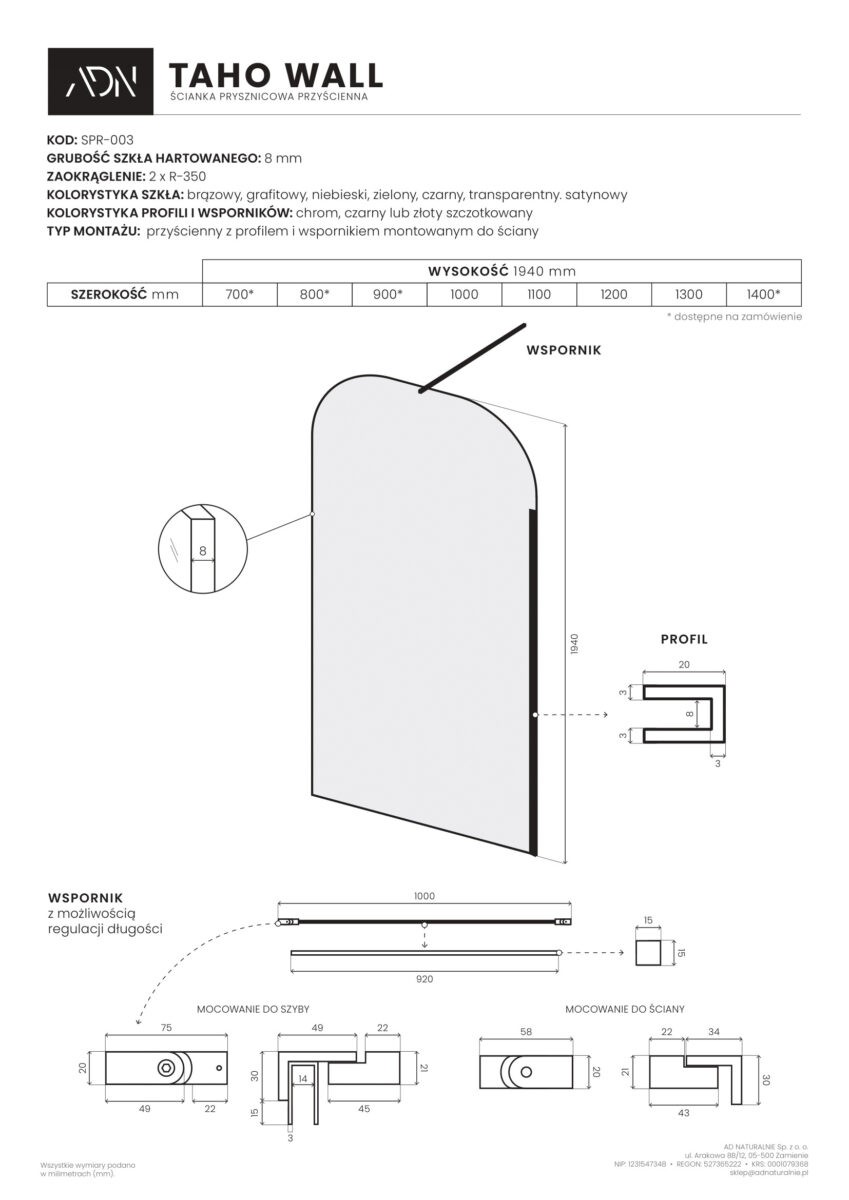 - w komplecie: zestaw montażowy, profil aluminiowy w kolorze, wspornik aluminiowy w kolorze