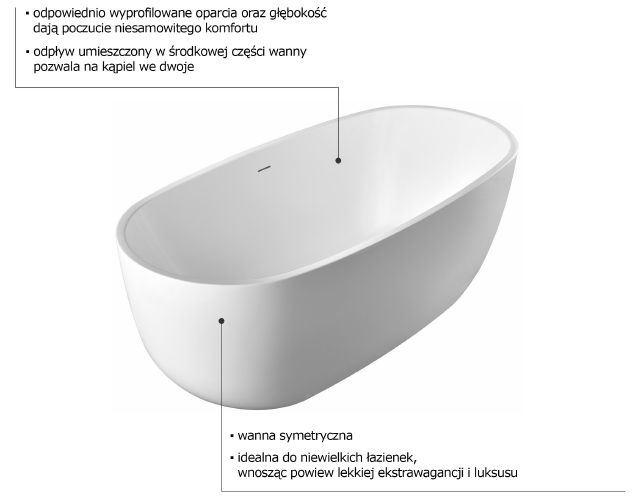 - odpływ w środkowej części wanny,
