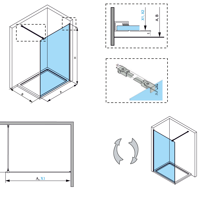 Walk-in 90 cm Aquaform Fuji 103-11-00090-01 - wymiary :