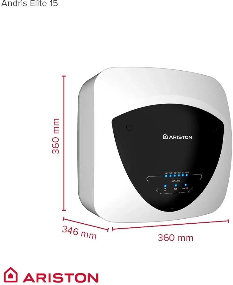 Funkcjonalna i niezawodna linia pojemnościowych podgrzewaczy wody Ariston Elite debiutuję w 2023 roku. Kolekcja Elite stanowi kontynuację serii Andris Lux z mocą 2kW. Niewielki podgrzewacz wody występuję w trzech wariantach pojemości 10,15 i 30 litrów z rozróżnieniem montażu pod i nad umywalkę. Maksymalne ciśnienie robocze urządzeń z serii Ariston Elite to 8 bar. Nowością jest zastosowana funkcja Boost, która błyskawicznie podnosi temperaturę w przypadku zwiększonego zapotrzebowania. Seria Andris Elite została wyposażona w grubą izolację poliuretanową między zbiornikiem a zewnętrzną obudową, dzięki czemu utrzymuję długo temperaturę nagrzanej wcześniej wody. Wpływa to mocno za ograniczenie zużycia energii. Ariston Andris Elite występuję w wersji podstawowej jaki i wyposażonej w moduł WIFI ( sterowanie przez dedykowaną aplikację )