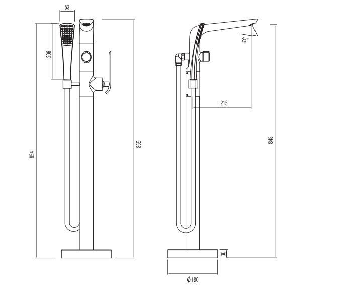 Bateria wannowa podłogowa Art Platino EMIRA CHROM głowica ceramiczna chrom EMI-BWP.090C