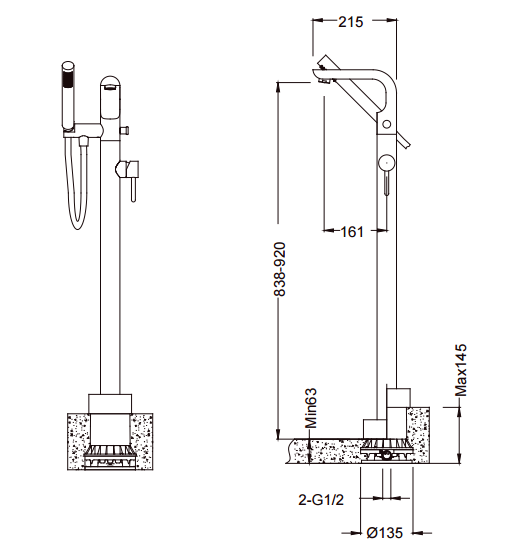 - bateria wannowa podłogowa,