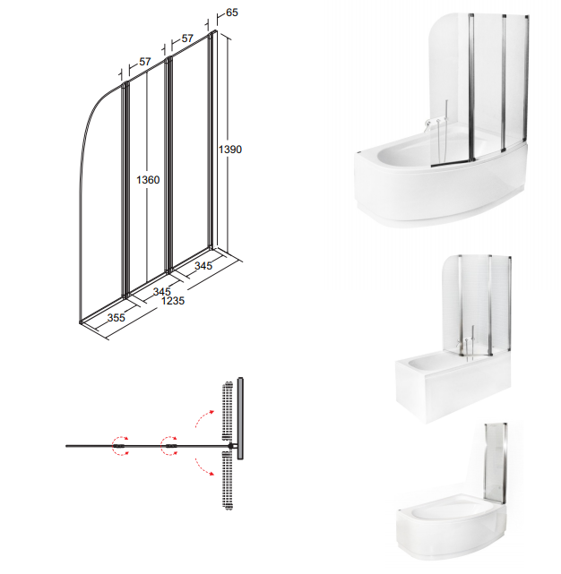Besco Ambition 3 parawan nawannowy 3 skrzydłowy profile chrom błysk, szkło przejrzyste, PA-3S
