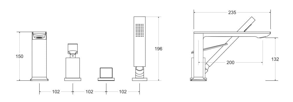 Besco Aspira bateria wannowa 4-otworowa, kolor złoty BW-A4-ZL