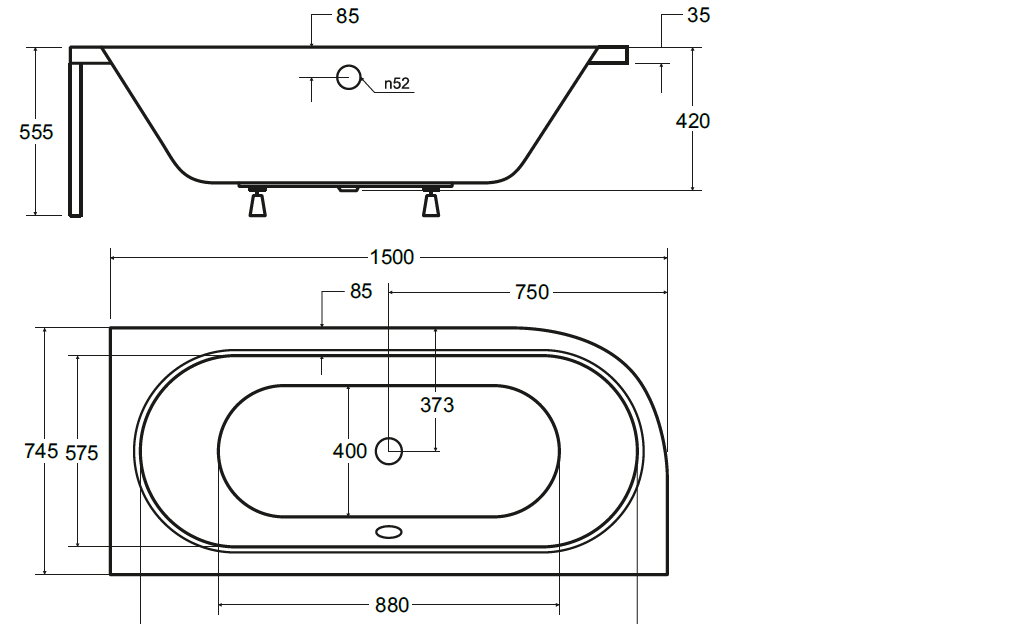 Wanna Besco Avita 150x75cm wersja prawa, kolor biały #WAV-150-NP - cechy produktu: