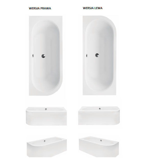 Uwaga! Oferta dotyczy wanny prawej. Przedmiotem sprzedaży jest sama wanna bez obudowy widocznej na zdjęciach.