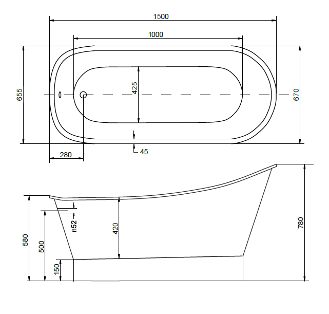 Besco GLORIA, Wanna wolnostojąca 150 x 68 cm, kolor biały, #WMD-150-GL