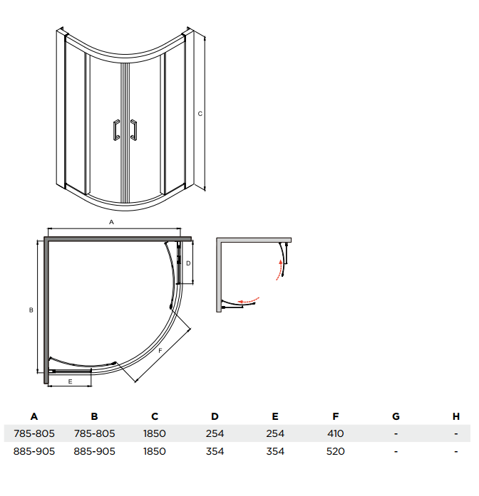 - wymiary: 90 x 90 x 185 cm