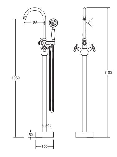 Besco Retro bateria wannowa wolnostojąca, kolor czarny mat BW-RI-CZ