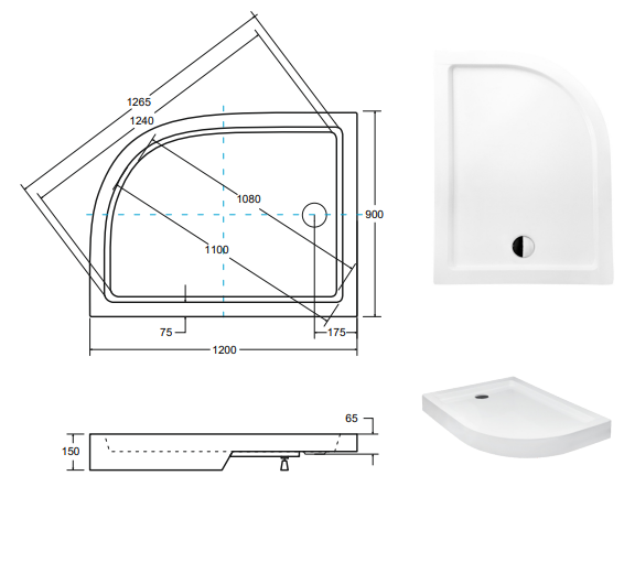 Besco Saturn Brodzik asymetryczny 120x90 cm, wersja lewa #BAS-120-NL