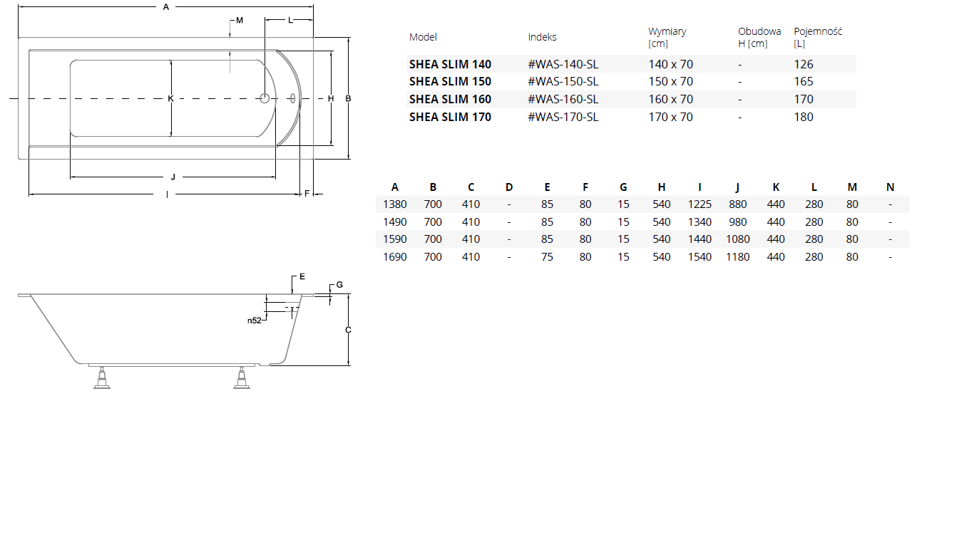 Shea slim to kolekcja dedykowana tylko do zabudowy, charakteryzuję się ultra cienkim rantem o wysokości 1,5 cm. Wanny wykonane z akrylu.
