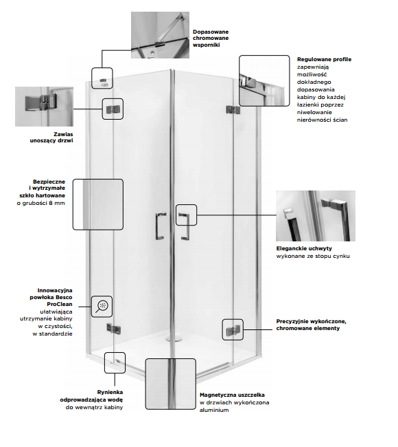 - z powłoką Besco ProClean ułatwiającą utrzymanie kabiny w czystości