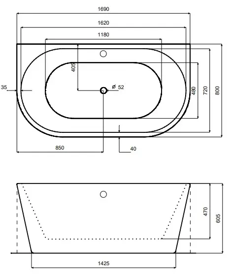 - wanna posiada otwór rewizyjny z tyłu wanny do łatwego dostępu do syfonu