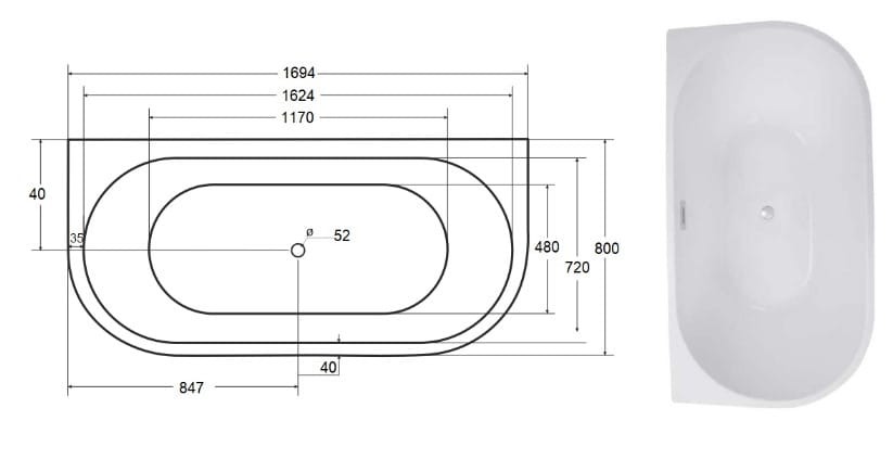 Wanna przyścienna Besco Vica Slim+ - wymiary: