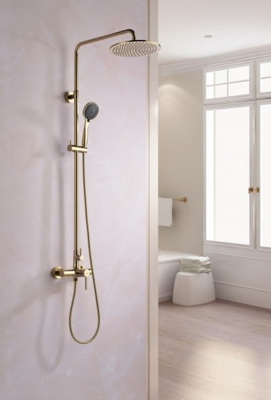 Złota kolumna prysznicowa Blue Water DENVER DEN-ZKPN.400Z z deszczownicą Ultra Slim 250 mm, montaż natynkowy kolor złoty - cechy produktu: