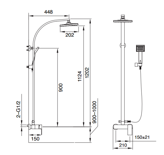- głowica natryskowa 8” (200 mm), kwadratowa