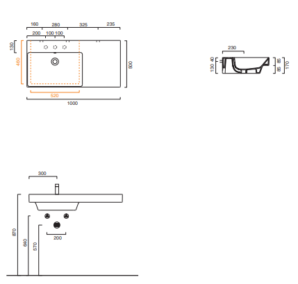 Wisząca umywalka Catalano New Zero,100x50cm z półką po prawej stronie, 110SZEUP000