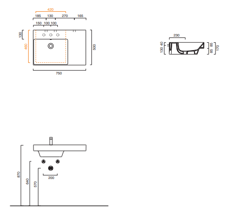 Umywalka wisząca Catalano New Zero 75x50 cm, (z mocowaniami Z3443) biała, lewa 175SZEUP00