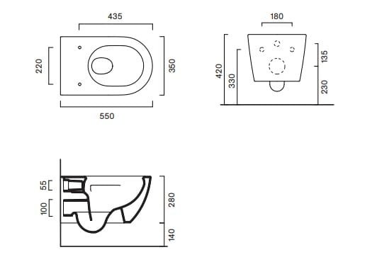 Technologia bezrantowa Catalano opracowana przez włoskich projektantów wyróżnia na tle konkurencji bardzo ciche spłukiwanie wody. Toaleta Catalano Sfera występuję w dwóch opcjach długości - klasyczna wc o długości 54 cm, oraz krótka miska Sfera 50 cm. Każdą miskę można dla ułatwienia kupić jako komplet, czyli miska z deską i niezbędne elementy montażowe.