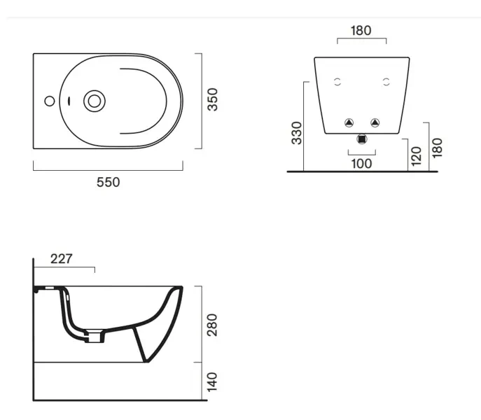 Bidet wiszący Catalano Sfera 55x35 cm kolor biały mat 1BSF54BM/0518551021- cechy produktu: