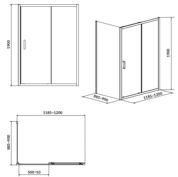 Kabina prysznicowa przesuwna 120x90x190 cm szkło transparentne Cersanit Arteco S157-012
