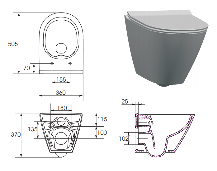| Montaż miski | Wiszący |