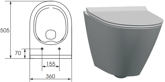 Zestaw miska z deską City Oval Cersanit K701-104 - wymiary