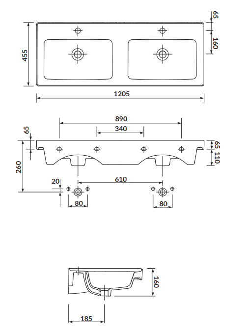 - umywalka z otworami przelewowymi,