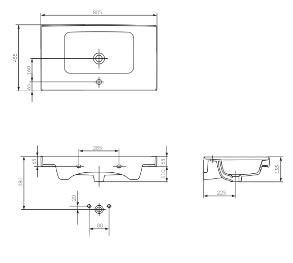 Cersanit Crea S801-279 Zestaw szafka z umywalką 80 cm, kolor biały - elementy zestawu: