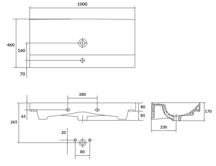 - umywalka Larga wykonana jest z ceramiki ROCKLITE,