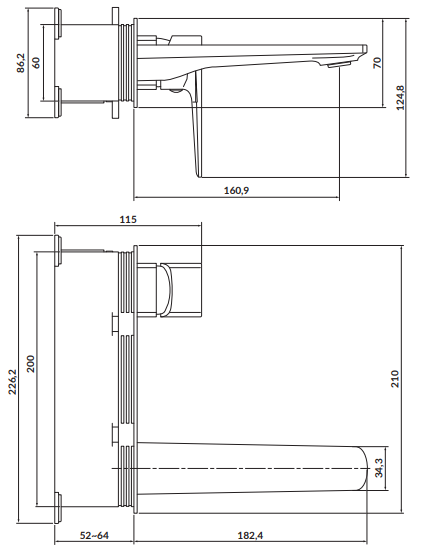 Bateria umywalkowa Cersanit Larga czarny mat podtynkowa - wymiary