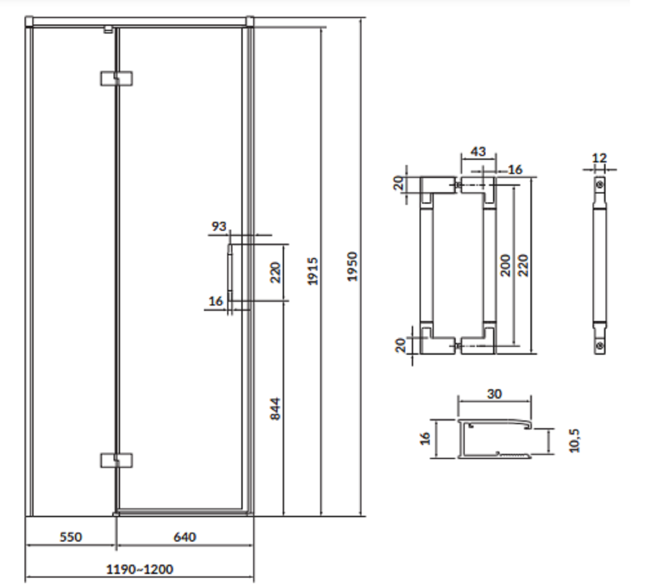 - możliwość montażu na brodzizku lub posadzce,