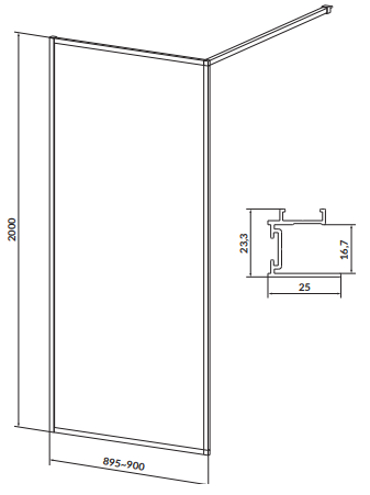 Ścianka prysznicowa z czarnym profilem Cersanit Larga S932-138, walk-in 90 cm - dane techniczne