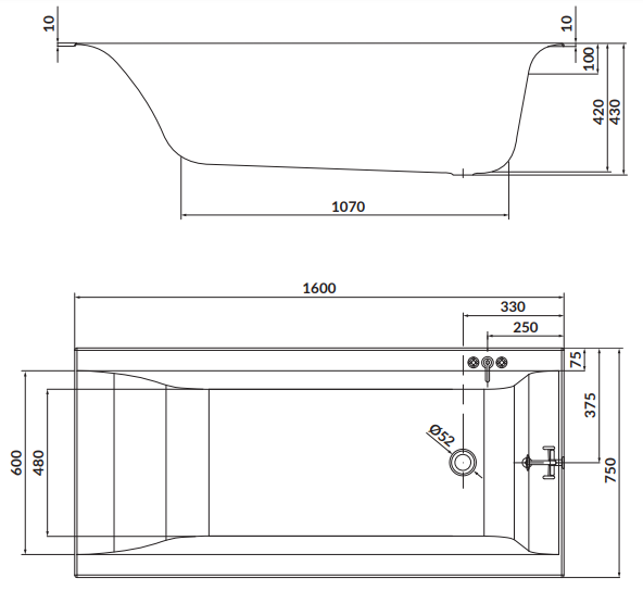 Wanna 170x75 Cersanit Larga - dane techniczne