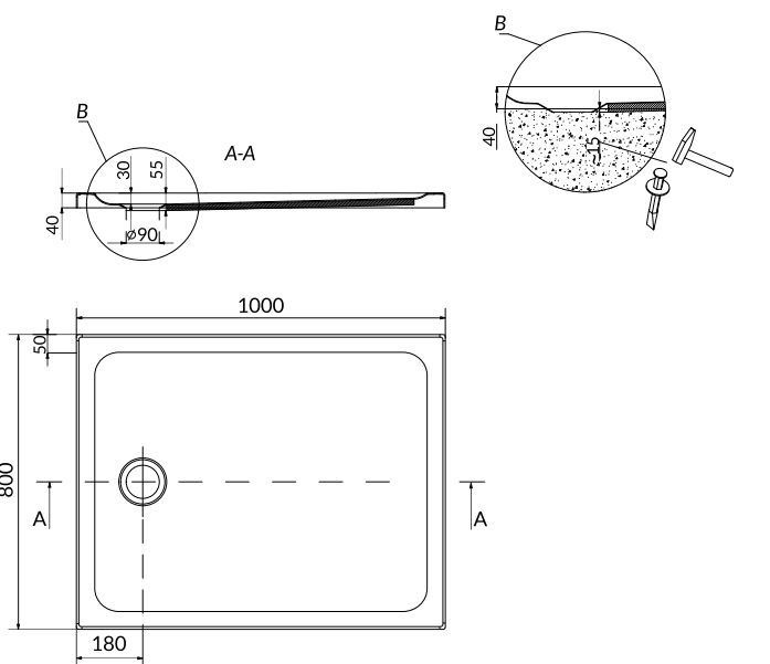 Seria Tako wykonana jest z najwyższej jakości akrylu, z podwójnym wzmocnieniem z żywicy i włókna szklanego. Brodzik kwadratowy posiada 4 cm wysokości, dzięki czemu sprawdzi się idealnie w nowoczesnych wnętrzach.