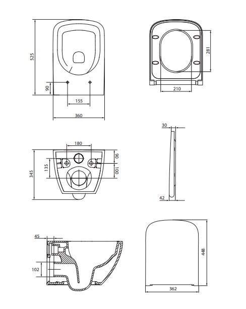 Toaleta Cersanit bez rantu Zen Pro Square spłukiwanie wirowe deska wolnoopadająca Slim S701-882 - cechy produktu: