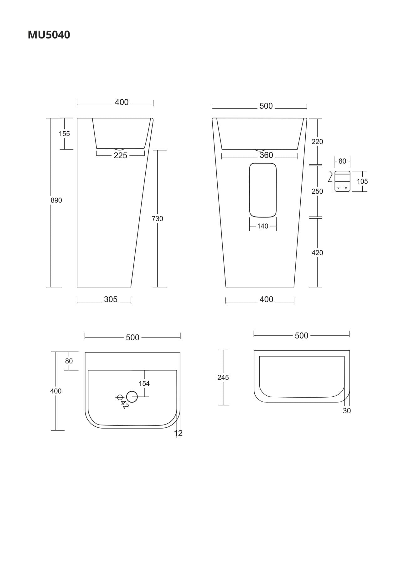 Umywalka wolnostojąca Corsan Olia MU5040WHS - dane techniczne: