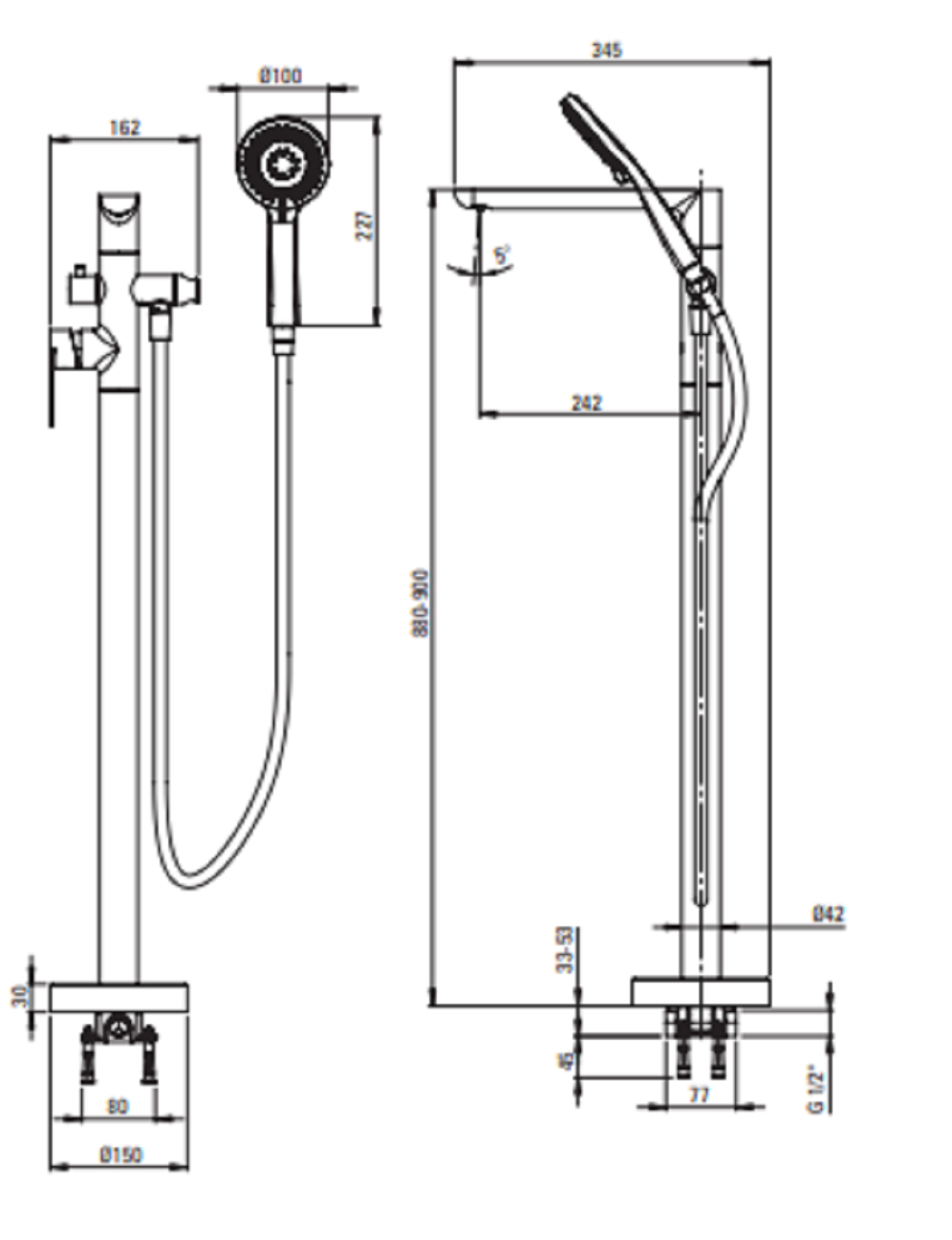 Bateria wannowa wolnostojąca z zestawem prysznicowym Deante Alpinia BGA_Z17M, kolor złoty - cechy produktu: