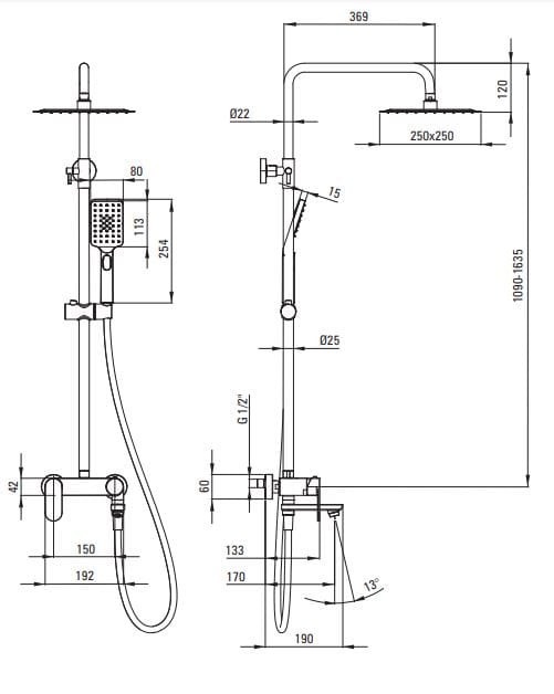 - typ produktu: zestaw prysznicowy z deszczownicą i wylewką wannową,