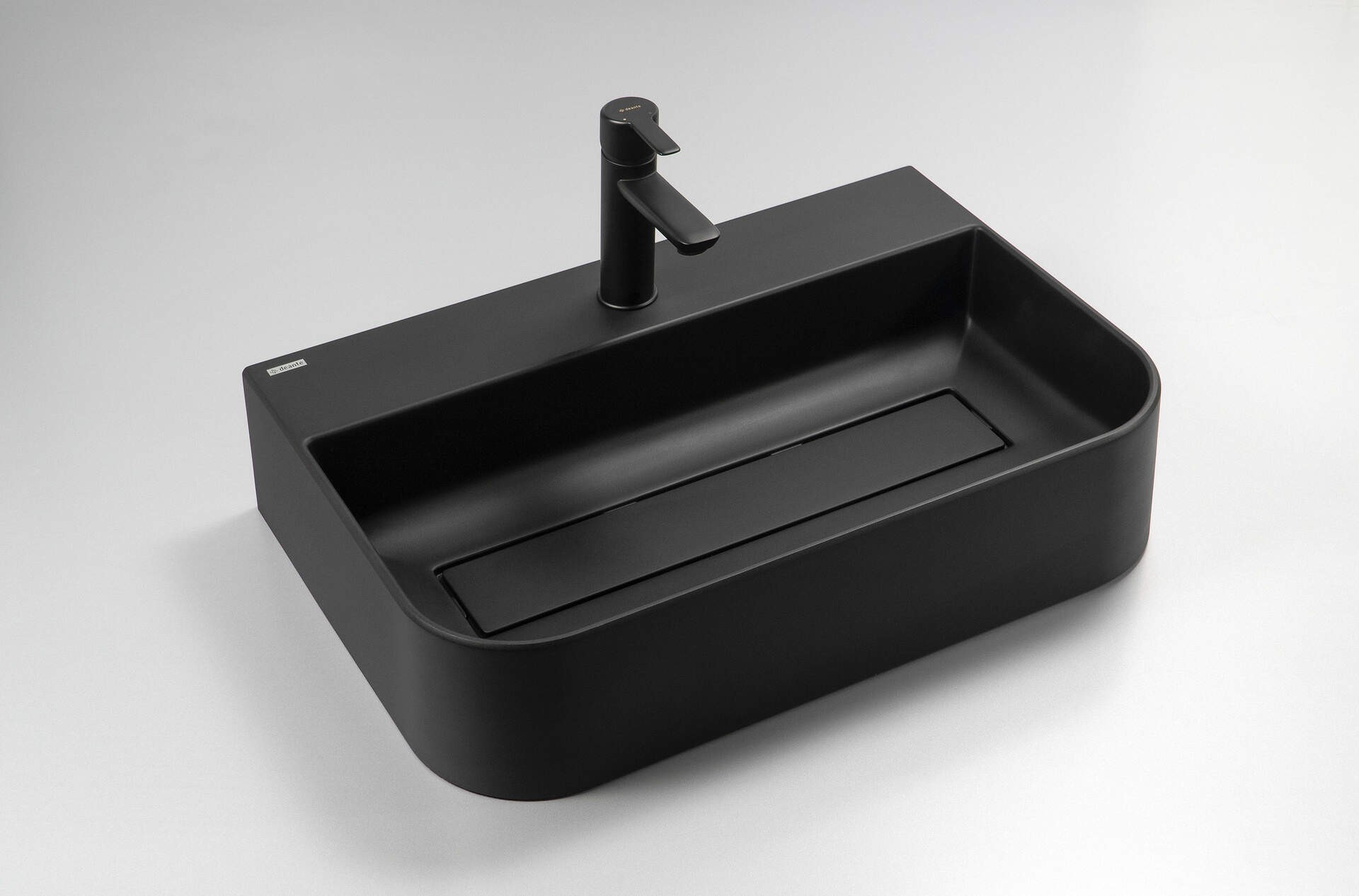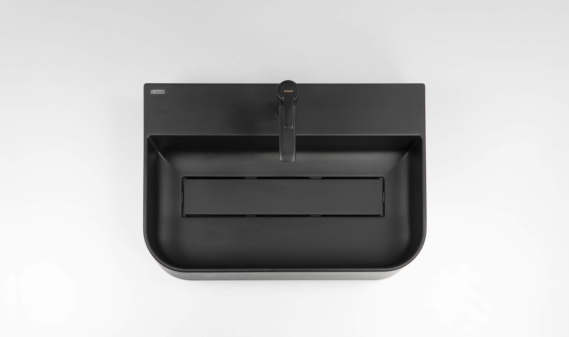 Deante Arnika Umywalka granitowa nablatowa 605x405 mm z miejscem na baterię z maskownicą, kolor czarny-mat (nero) CQA_NU6S