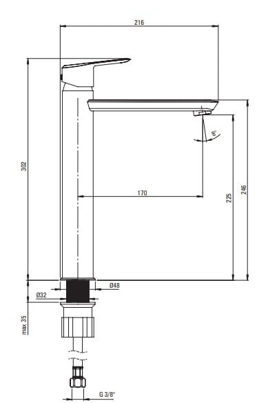 - zasięg wylewki: 17 cm.