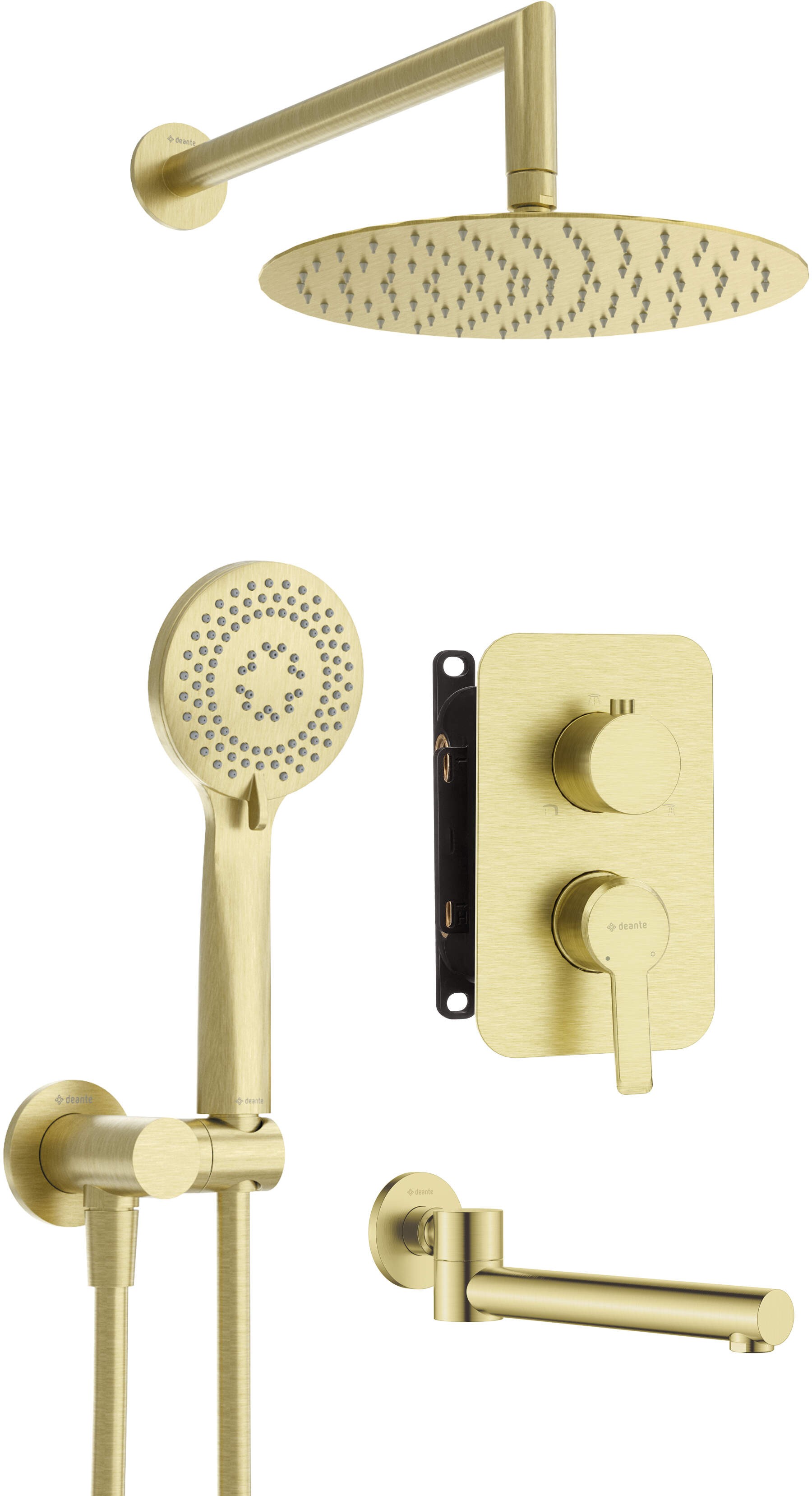 Zestaw Prysznicowy Podtynkowy Deante Arnika Z Deszczownicą I Wylewką Wannową Kolor Złoty Szczotkowany BXYYRQAM - cechy produktu:
