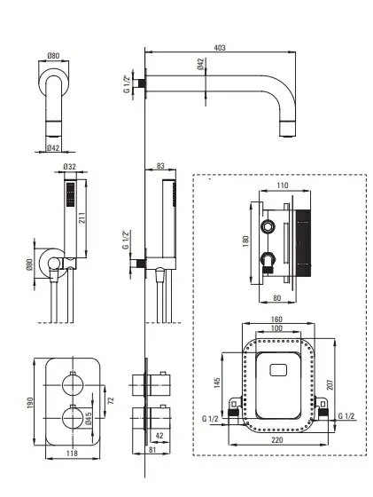 Deante Silia komplet natryskowy podtynkowy termostatyczny- właściwości