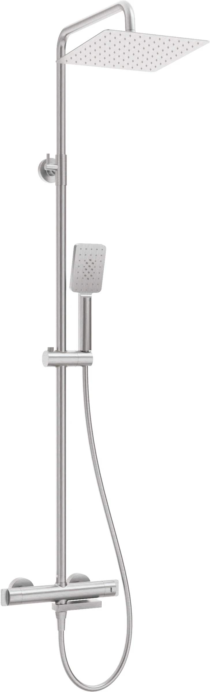 Deante Cascada zestaw prysznicowy termostatyczny z wylewką wannową, kolor stal szczotkowana NAC_F1HT