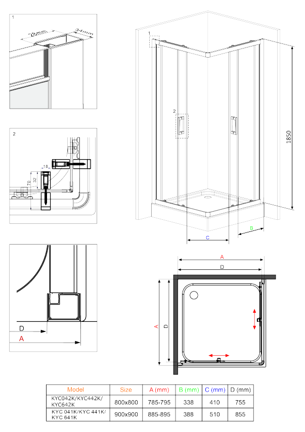 Kabina prysznicowa kwadratowa, Deante Funkia, 90 cm, szkło grafitowe, chrom, KYC_441K