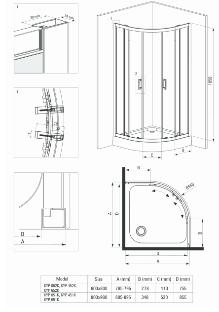 Kabina Funkia 80 cm czarny mat - wymiary