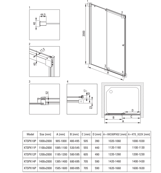 - Montaż: do kompletowania z walk-in KTS,